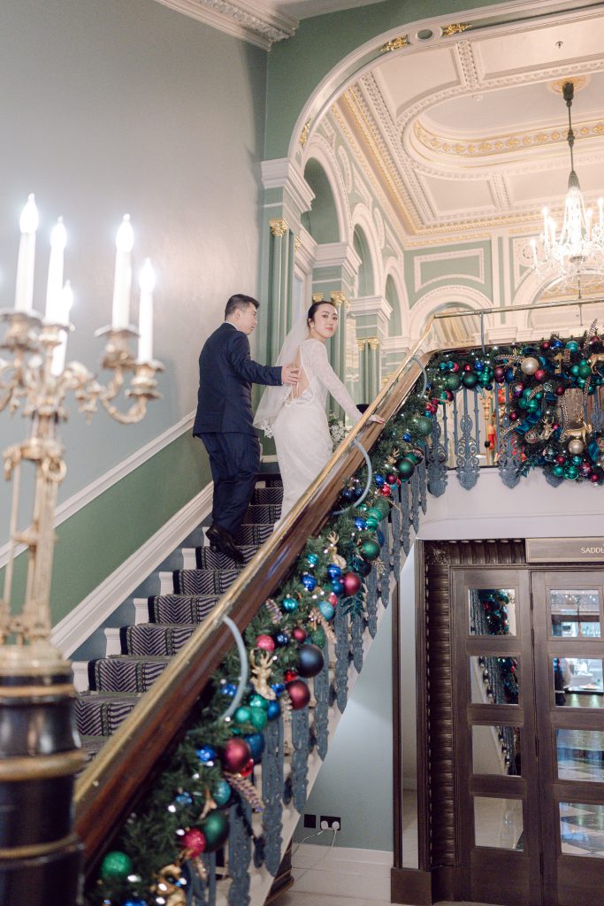The Shelbourne florist added a lovely touch with stunning flower arrangements and the festive decor made it all the more magical. The bride looked gorgeous in a dress from her home country, paired with Prada shoes, and a timeless wedding ring from Tiffany & Co.