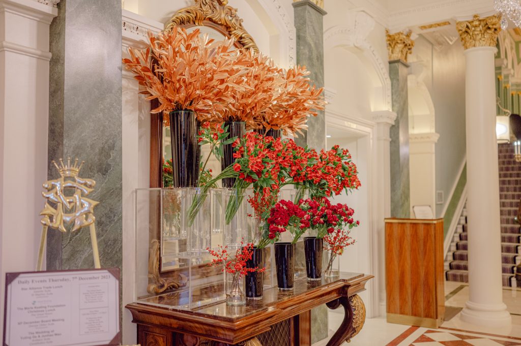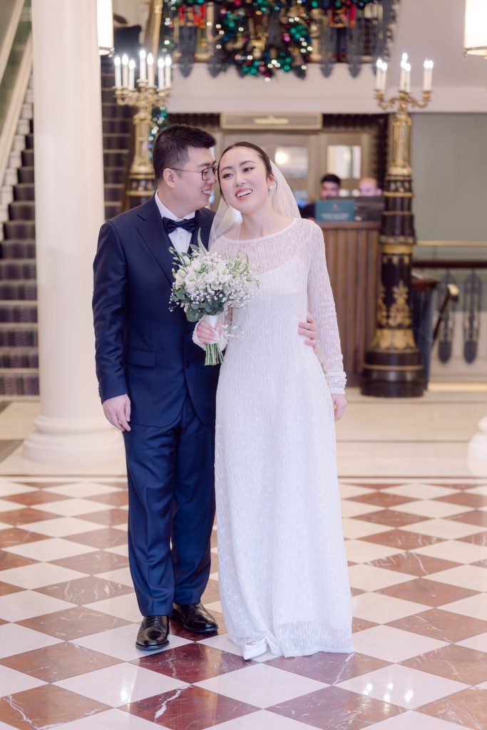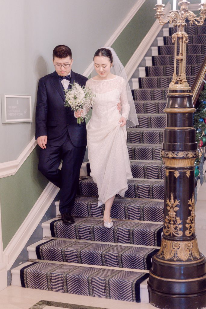 The Shelbourne florist added a lovely touch with stunning flower arrangements and the festive decor made it all the more magical. The bride looked gorgeous in a dress from her home country, paired with Prada shoes, and a timeless wedding ring from Tiffany & Co.